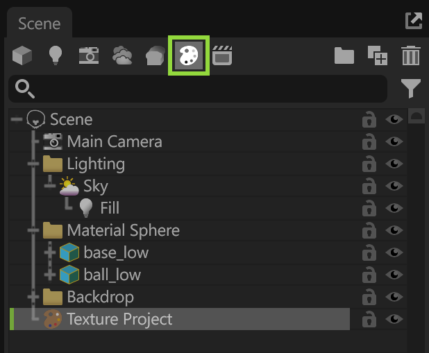1 – Scene Window > New Texture Project Icon